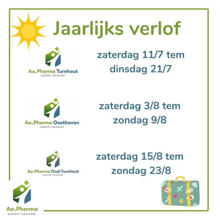 Je kan tijdens deze week terecht bij 1 van de andere Aa.Pharma apotheken.