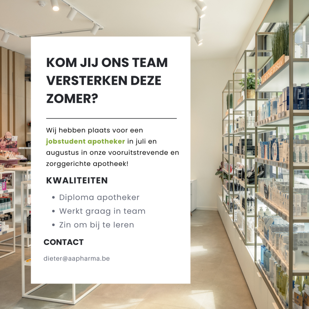 Wij hebben deze zomer plaats voor een jobstudent apotheker.