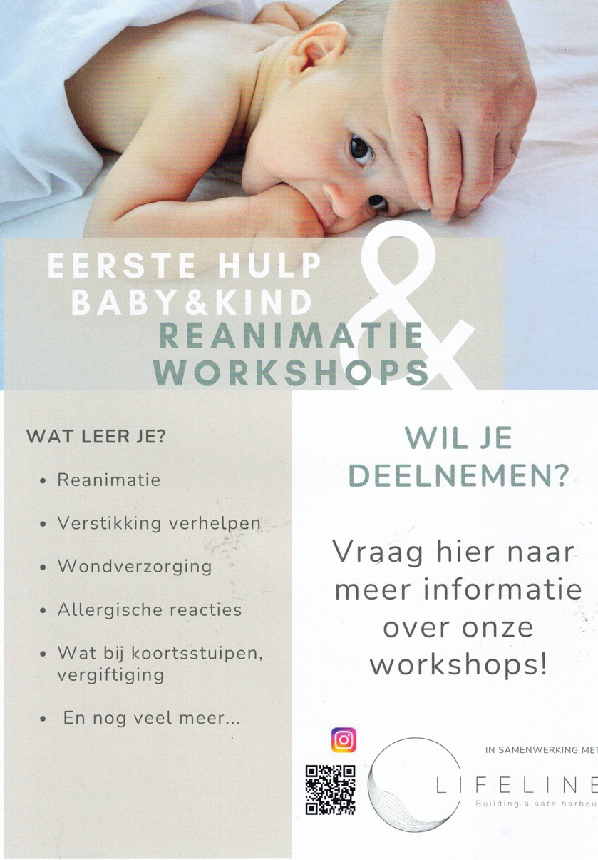 Op zaterdag 14 februari organiseren we in samenwerking met Lifeline een workshop EHBO bij baby’s en kinderen. Het is een praktische sessie waarin je alles leert rond eerste hulp en levensreddend handelen. Toegankelijk, helder en vooral hands-on, zodat jij met vertrouwen kan reageren in een noodsituatie. Want elke seconde telt.